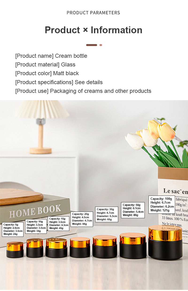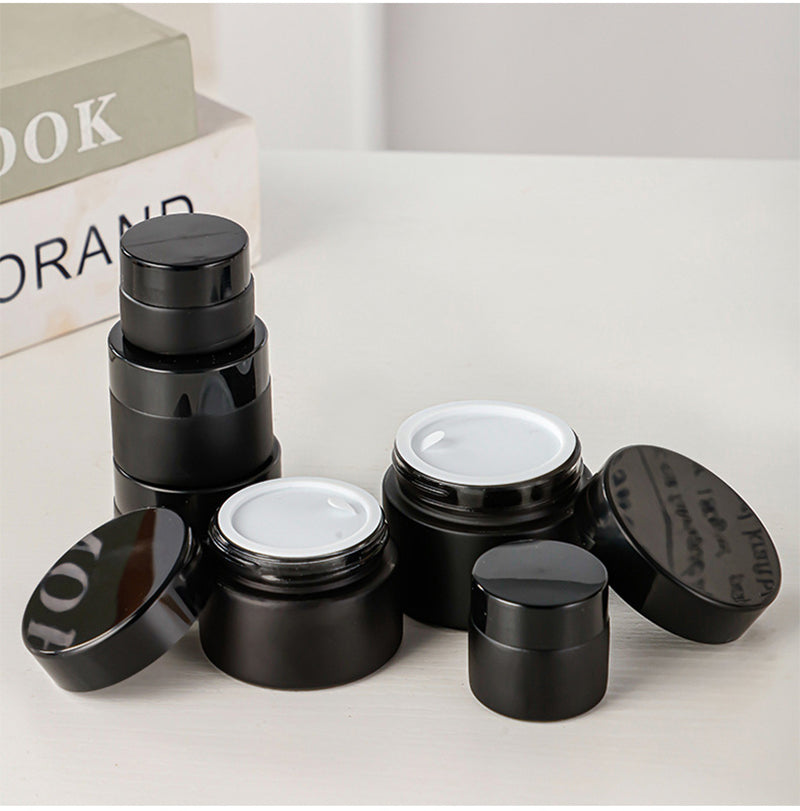 | Product Name: | Frosted Black Glass Cream Jar with Custom Lids 5–60g |