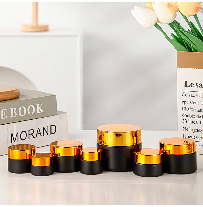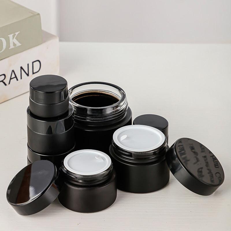 This frosted black glass cream jar is designed for face cream, eye cream, balm, and skincare formulations. Available in multiple capacities and lid styles, it is ideal for both retail and travel-size cosmetic packaging.