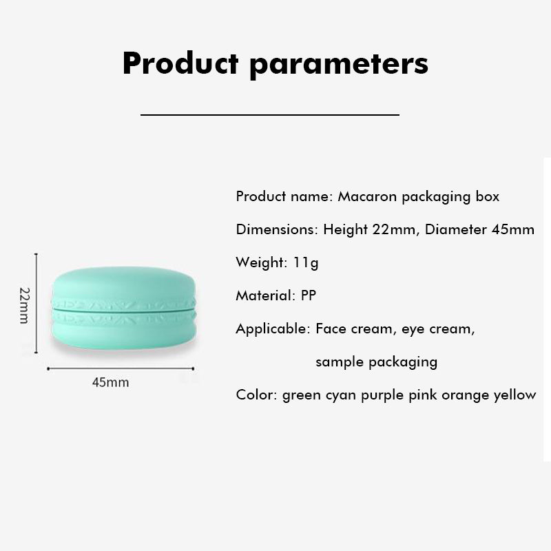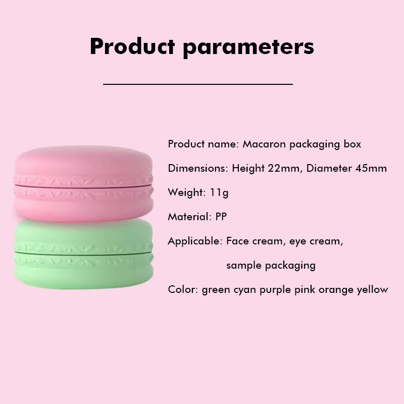 These macaron-style 10g PP jars are ideal for filling and repackaging eye cream, face cream, balms, and other semi-solid cosmetic formulas. Their compact, colorful design makes them perfect for sample sets, travel-size kits, promotional gifting, or starter collections.