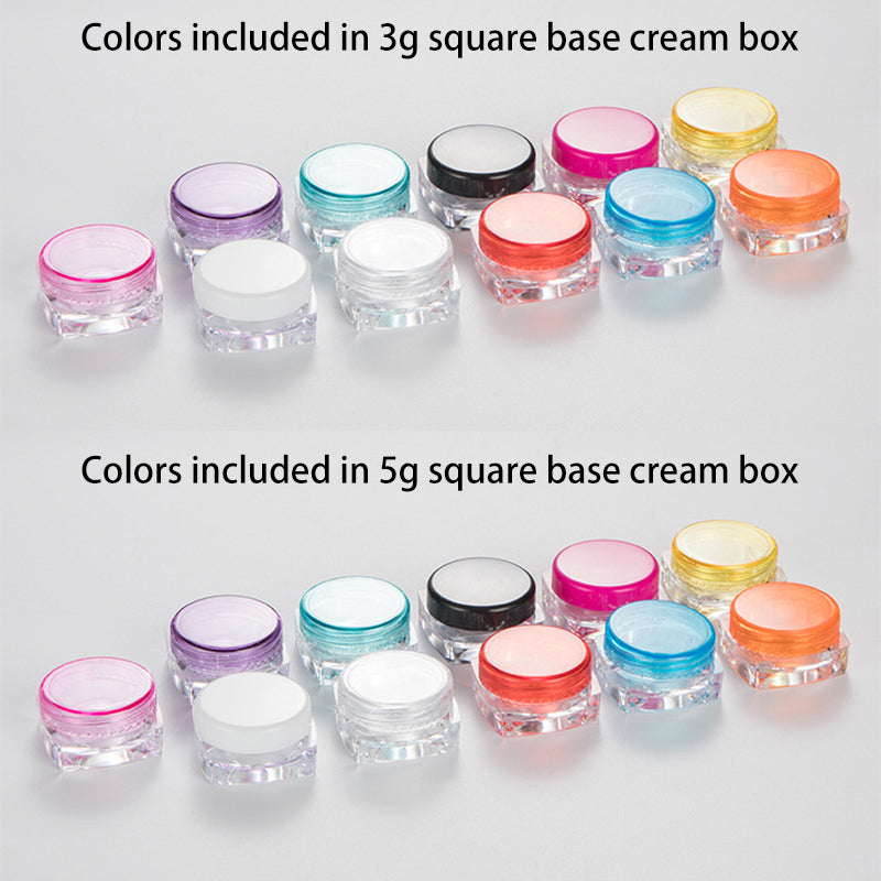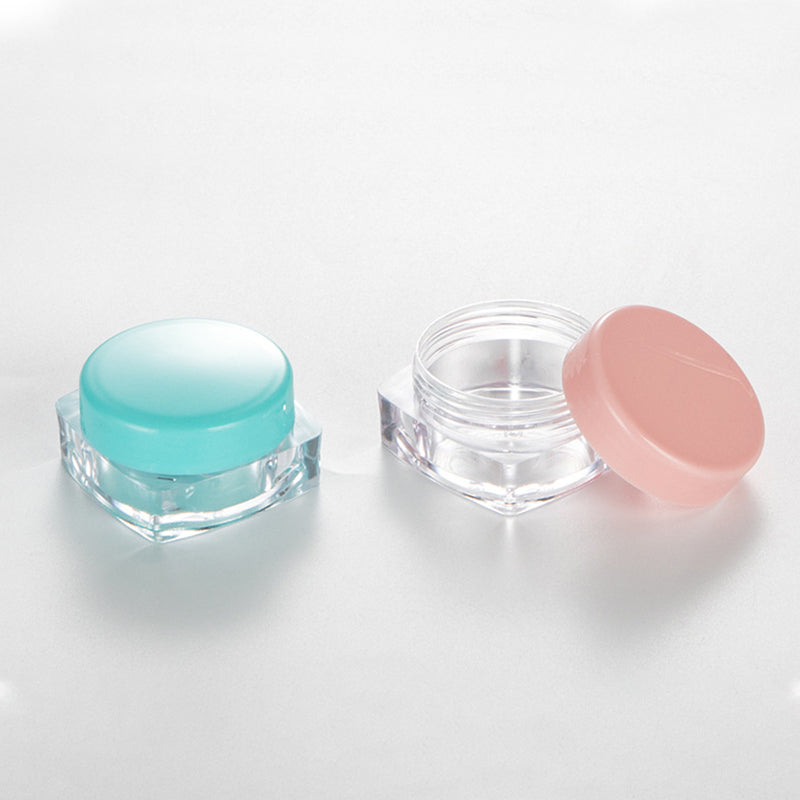 These 3g, 5g, and 10g square base cosmetic cream jars are crafted from durable plastic and available in multiple vibrant lid colors. Their sleek and compact design makes them ideal for packaging eye cream, face cream, and other skincare samples.